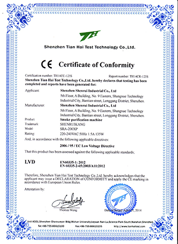 該凈化機是專門為焊錫工位操作、激光雕刻、打標等所產生煙塵的凈化而設計的。SRA煙塵凈化機采用進口高風壓、低噪音風機,能有效的吸取煙塵顆粒,并最大限度的延長濾芯的使用壽命。其控制系統采用PWM調速,可根據煙塵產生量實現對風量的連續精確調節;該控制系統設計了指示燈光報警裝置,當濾芯堵塞,紅色指示燈點亮,提示更換濾芯。該凈化機的過濾系統由預過濾層、主過濾層和氣體過濾層三部分組成,預過濾層能夠吸附氣流中比較大的粒子來避免主過濾層過早的被堵塞;主過濾層由HEPA高效過濾芯組成,HEPA高效過濾芯對0.3微米的微粒的過濾效率為99.99%,氣體過濾層由化學濾芯組成,能有效的去除氣流中的有害氣體。