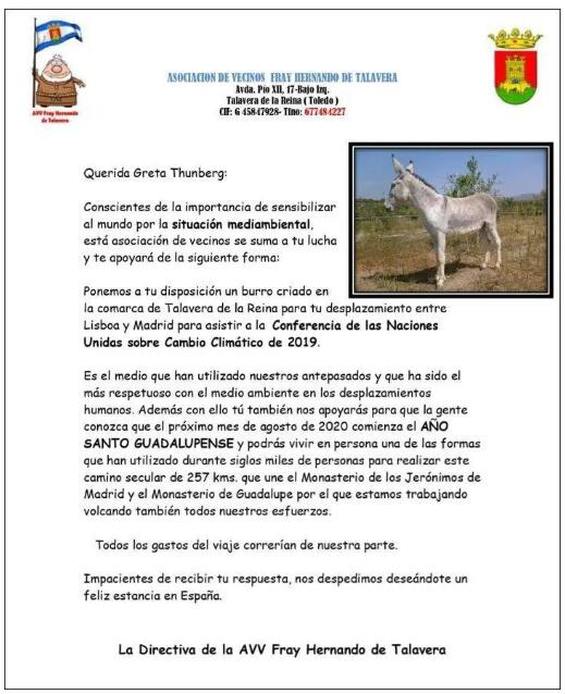 事情是這樣的,最近一段時(shí)間,西班牙首都馬德里正在召開(kāi)聯(lián)合國(guó)氣候變化大會(huì),該協(xié)會(huì)在社交平臺(tái)上公開(kāi)表示,要向與會(huì)人員之一的格蕾塔贊助一頭驢,以作為她從里斯本前往馬德里參加聯(lián)合國(guó)氣候變化大會(huì)最環(huán)保的交通工具。