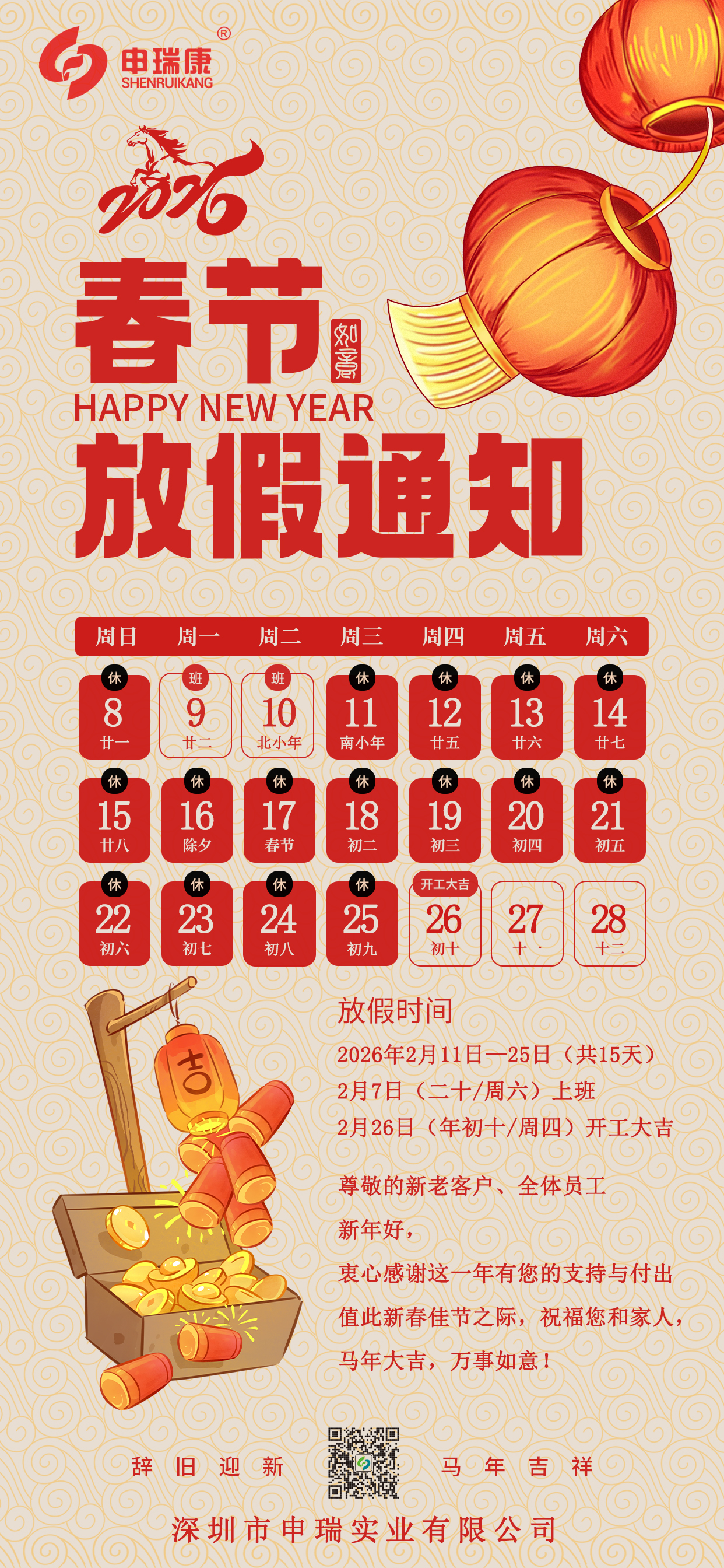 申瑞|2026年春節(jié)放假通知