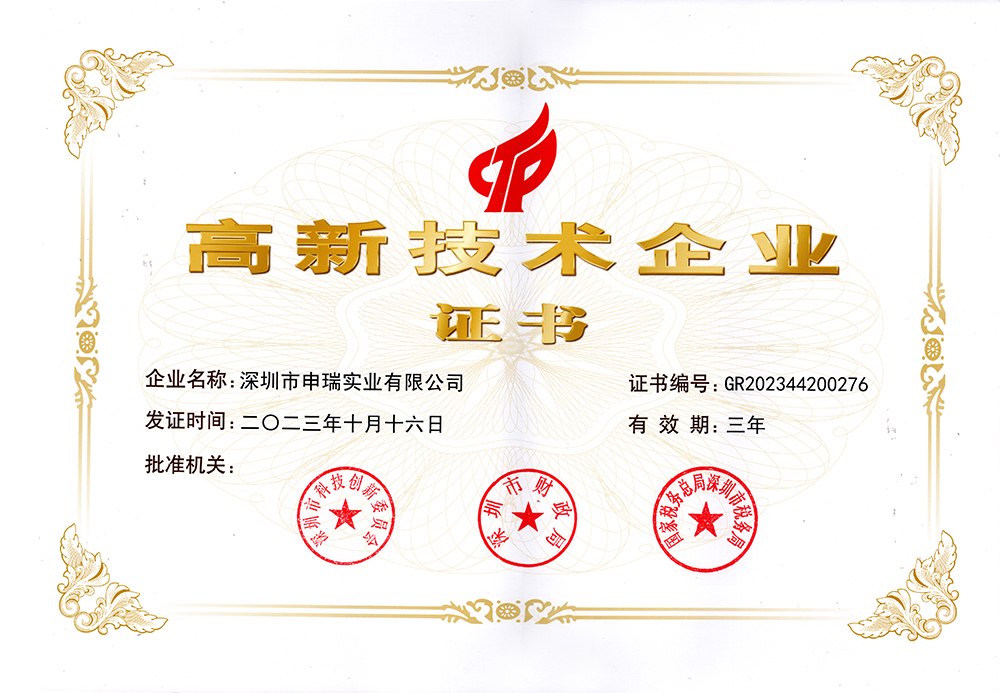 近日,申瑞實業在科技創新與專業化發展領域連獲殊榮,憑借卓越的技術研發實力、精細化的管理運營以及突出的市場表現,成功通過多重嚴格評審,正式被認定為“深圳市專精特新中小企業”,并持續保持“國家高新技術企業”及“深圳市創新型中小企業”資質。 這三大權威認證的獲得,不僅是對公司過往成績的高度肯定,更為企業的未來發展注入了強勁動力。